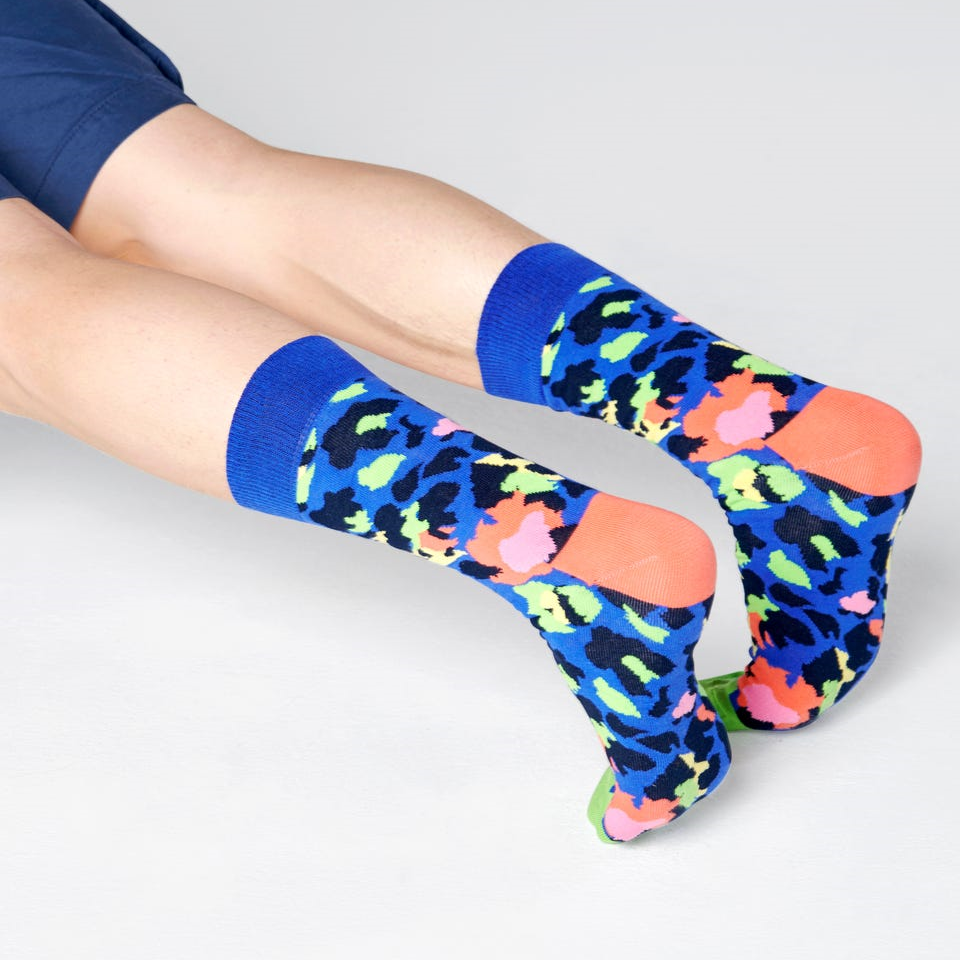 Put your paws first in the purple and orange Leopard Happy Socks. Inspired by the wildest cats in the animal kingdom and your wildest dreams, this energetic style will not be tamed.